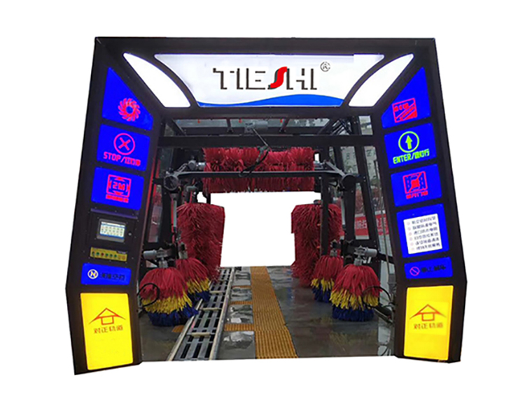 TS-11新型隧道連續(xù)式洗車機(jī)造型新穎、美觀,機(jī)器前臉摒棄其他廠家慣用的碳鋼方形門頭,全自動(dòng)電腦洗車機(jī)沿用目前世界上發(fā)達(dá)國(guó)家流行的較先進(jìn)現(xiàn)代拱門造型,采用有色亞克力材質(zhì)制造,圖示下方LED燈光,室內(nèi)和夜間使用更加醒目、美觀。