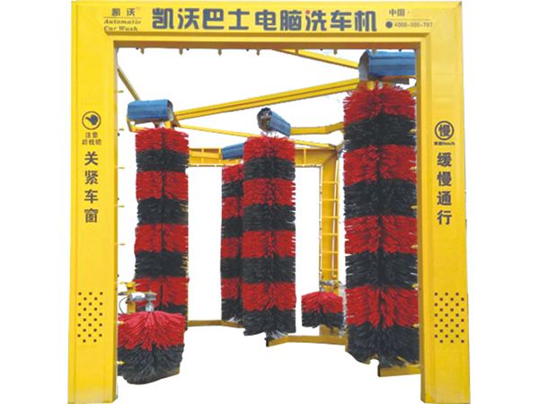 凱沃KW---600D型大型通道式電腦洗車機(jī),采用通道式洗車方式,車輛由駕駛員自行慢速駛?cè)霗C(jī)器清洗。四組毛刷分別清洗車輛的前后面和兩側(cè)面。兩個(gè)輪轂小立刷清洗輪轂和裙邊,能夠把車輛底下部分洗的更加干凈(大巴車容易臟的就是底下裙邊部分),電控系統(tǒng)自動(dòng)檢測(cè),自動(dòng)感應(yīng)噴水,自動(dòng)仿形刷洗車身,兩側(cè)擋水板可以有效防止洗車時(shí)水的外濺;
